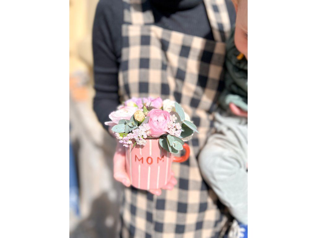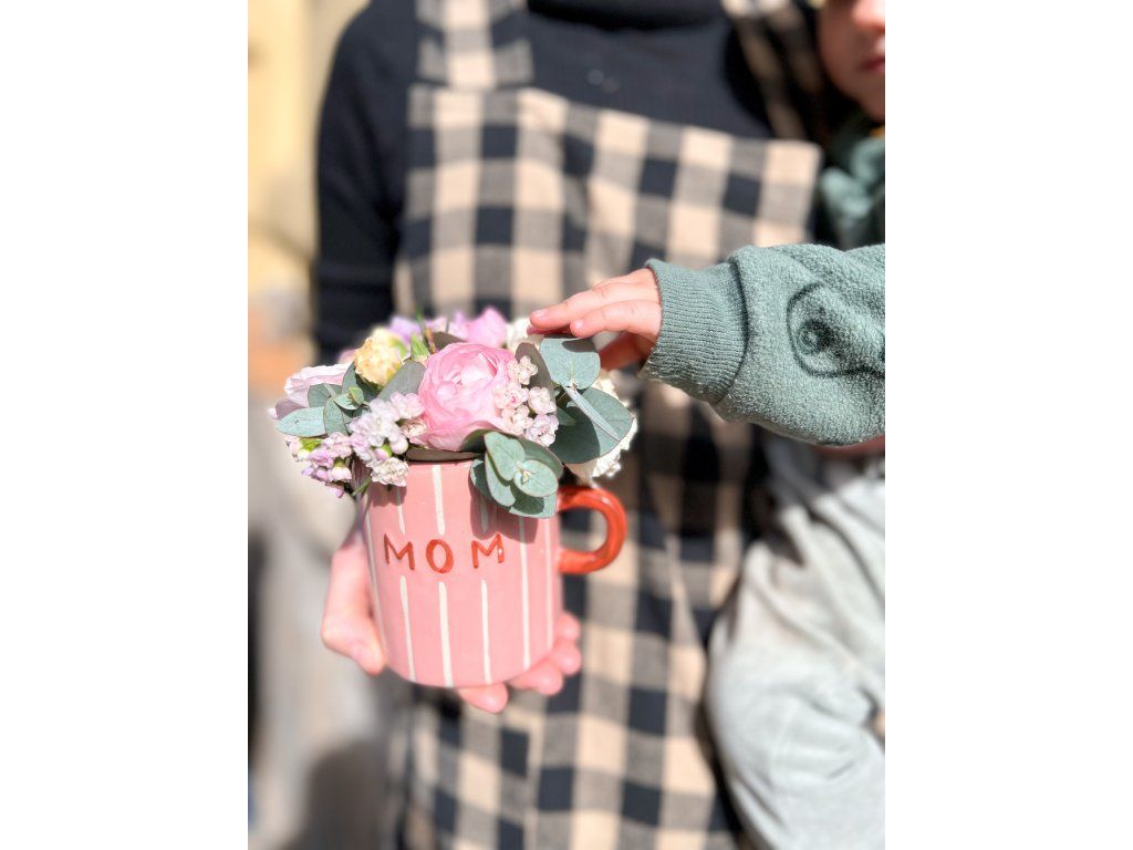 Hrneček na kávu nebo čaj s nápisem MOM a LOVE z druhé strany. Objednat můžete ke dni maminek, nebo na jiný den, napsat je ale potřeba do poznámky.