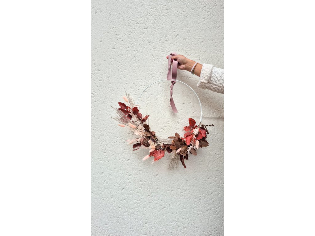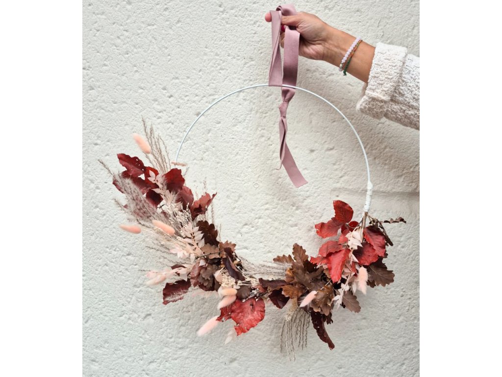 Věneček na bílé kovové konstrukci je krásnou dekorací, která potěší a rozzáří interiér. Přijďte si k nám pro útulnou atmosféru vašeho domova.