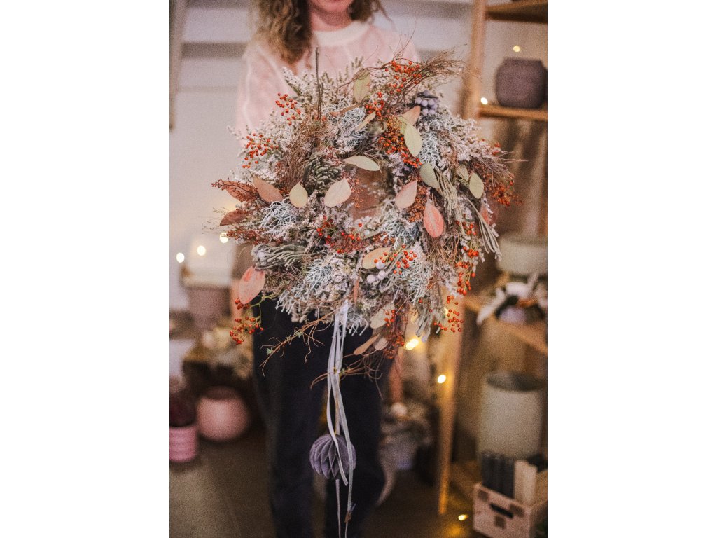 Průměr věnečků je cca 45 cm. Používáme trvalé sušené a stabilizované materiály, při správné péči tedy věnec vydrží více sezón.